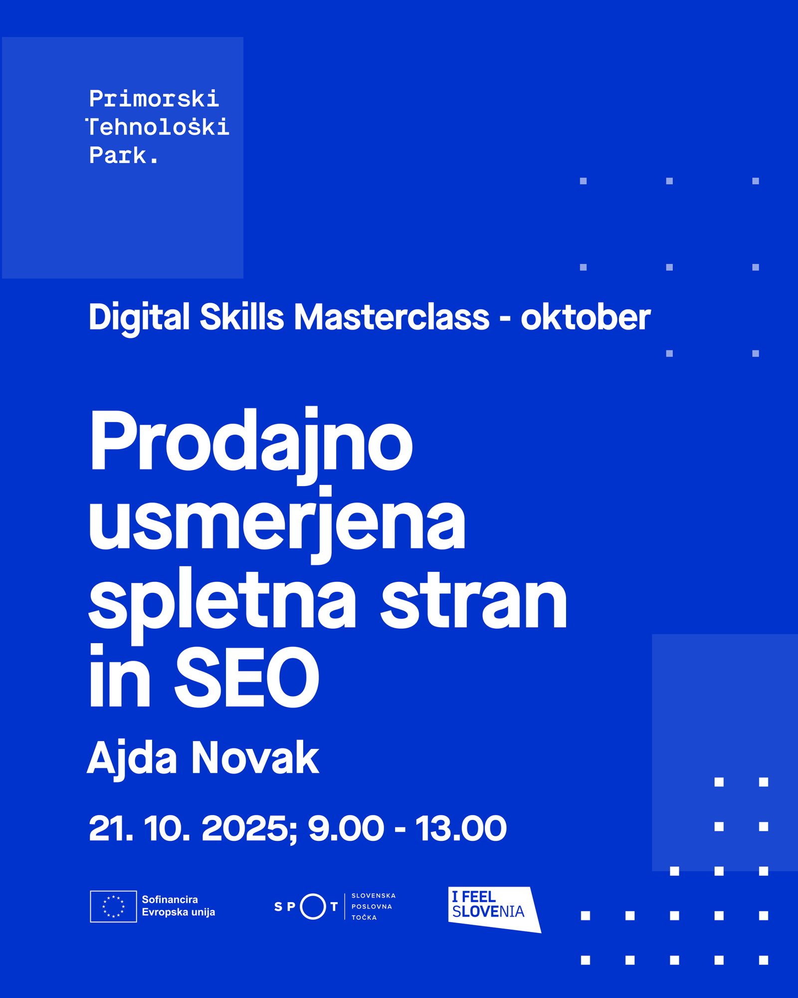 Vabljeni na delavnico v sklopu Digital Skills Masterclass: Kako dobra uporabniška izkušnja (UX) dvigne spletno prodajoDatum: 21. oktober 2025Čas: 13.00 – 16.00Lokacija: Primorski tehnološki park, soba N 19, prvo nadstropjeIzvajalec: Vito […]
